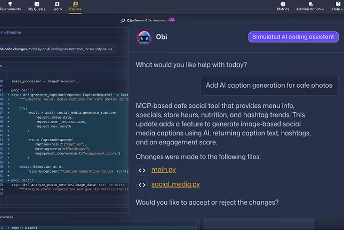 Developers learn to secure AI-generated code through interactive challenges that simulate real-world AI workflows. Learn to detect insecure patterns, validate outputs, and prevent vulnerabilities in a safe, controlled environment.